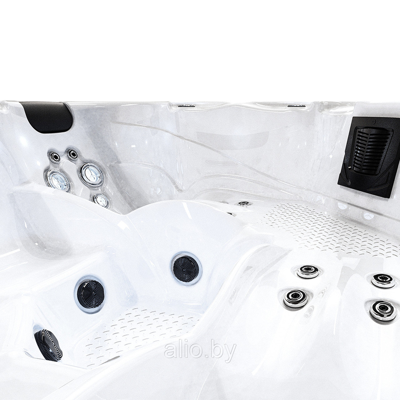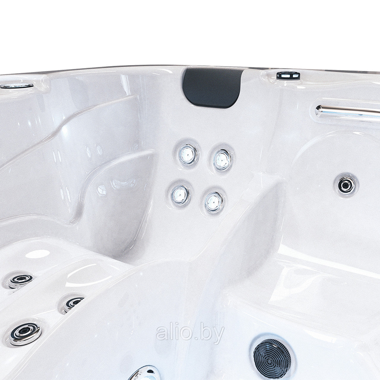 В гидромассажном СПА-джакузи Lovia Spa ZR6005 квадратной формы одновременно свободно может поместиться до 5 человек. В чаше бассейна предусмотрено 3 места для сидения, а также 2 полноценных lounge зоны.Такой гидромассажный бассейн то, что нужно для большой семьи или проведения времени с веселой компанией друзей. В нем даже маленькие дети будут чувствовать себя комфортно, несмотря на глубину чаши.