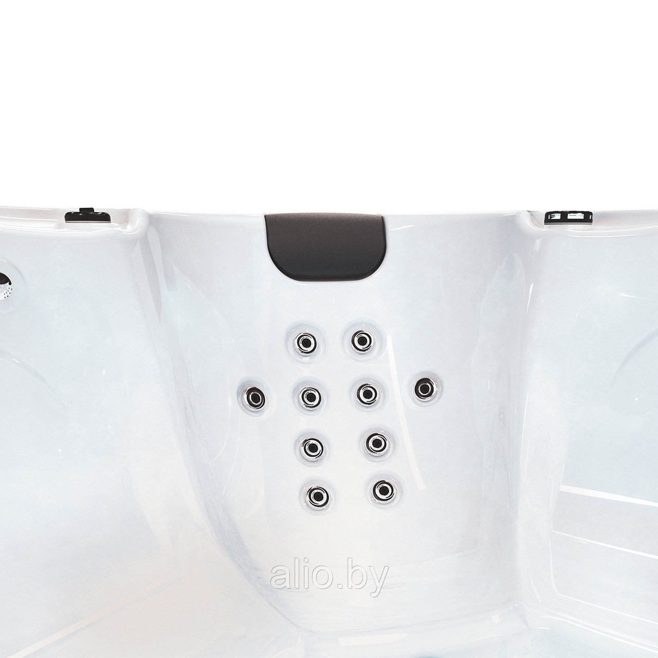 В гидромассажном СПА-бассейне Ловиа Спа ZR6005 установлено довольно много форсунок - 34 штуки. Через них вода и воздух направленно воздействуют на тело, производя желаемый гидромассажный эффект. Каждый пользователь может индивидуально регулировать силу потока.